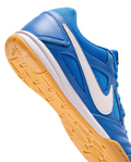 Talpa intermediară din spumă EVA amortizează fiecare pas, iar talpa exterioară din cauciuc natural, cu profil redus, oferă aderență excelentă și tracțiune multidirecțională pe terenurile indoor. Designul albastru vibrant, completat de accentele albe și detaliile iconice Nike, conferă o estetică modernă și sportivă.