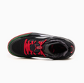 Partea superioară este realizată din piele naturală premium și materiale sintetice rezistente, oferind un aspect sofisticat și o durabilitate excelentă. Cromatica echilibrată – dominată de nuanțe închise, cu accente de roșu și gri – adaugă o notă dinamică și modernă, specifică gamei Jordan.